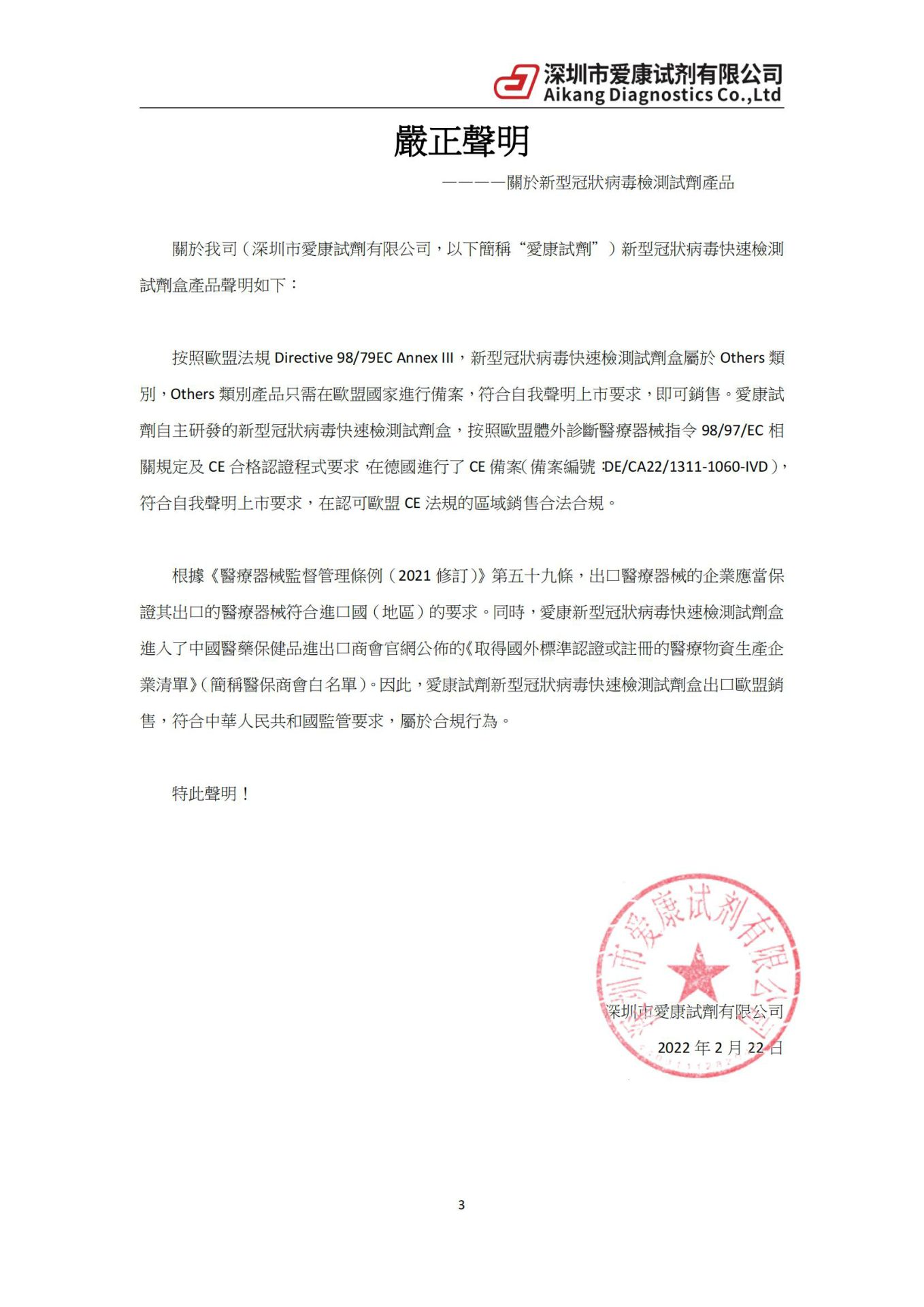 严正声明 —关于新型冠状病毒检测试剂产品