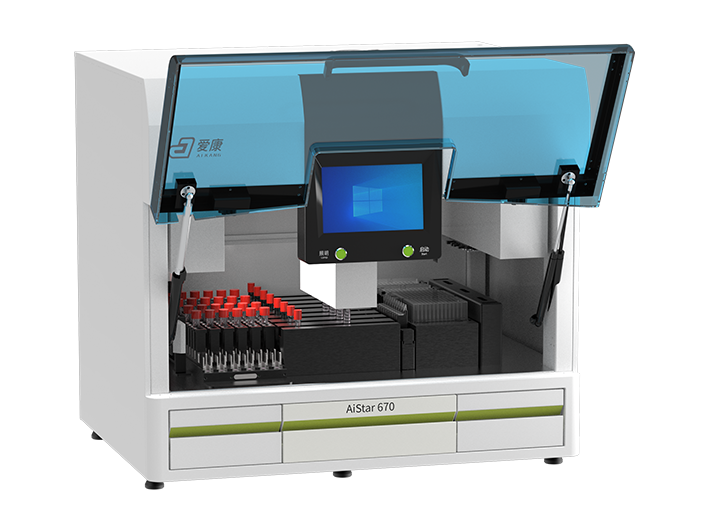 AiStar670分杯处理系统,全自动完成样本开盖分样的高通量设备,采样管原管带盖上样,实现自动化样本条码识别、自动化开盖、自动化管转板移液到96孔深孔板或目标容器,以及采样管的自动化关盖和回收。